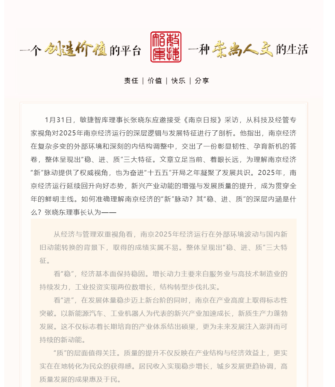 【新闻】在巩固“稳”与“进”中提升“质”——张晓东《南京日报》撰文解读南京经济“新”脉动