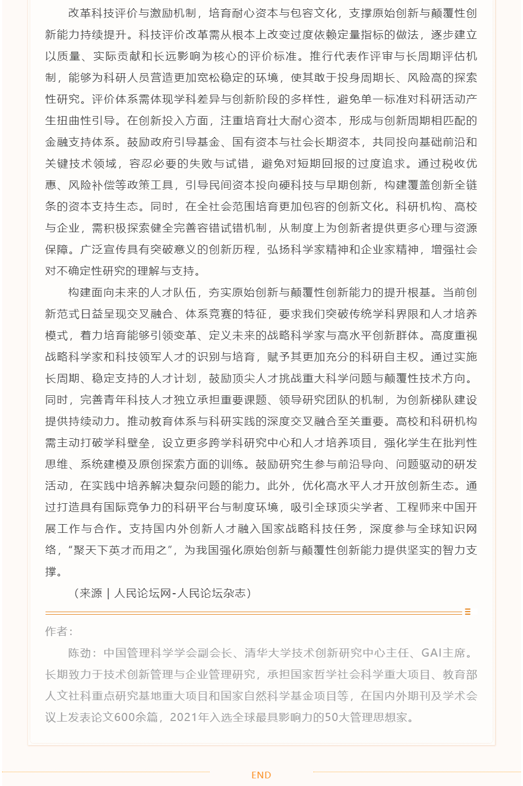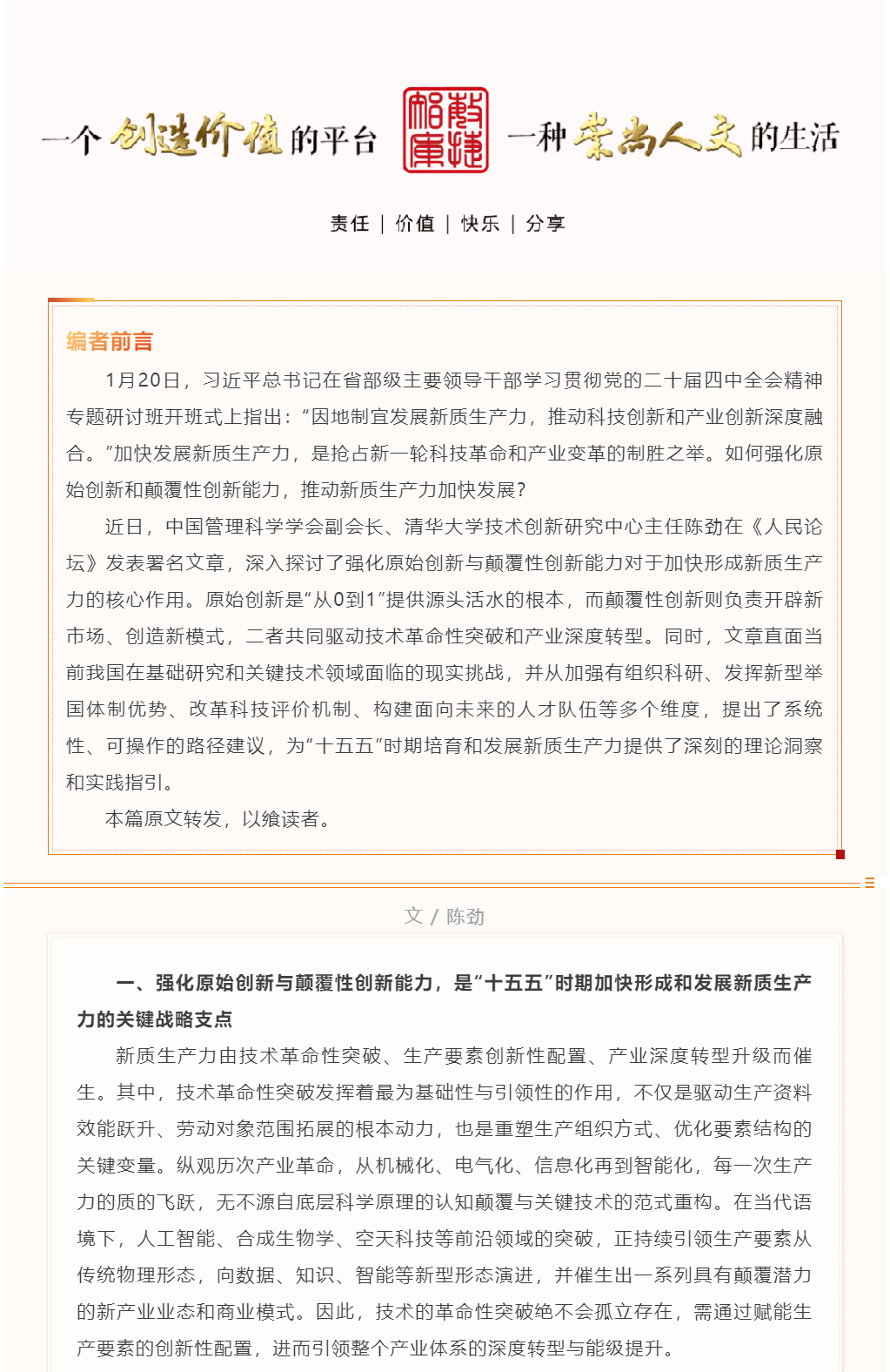 【论道】陈劲:加快发展新质生产力,要强化原始创新和颠覆性创新能力